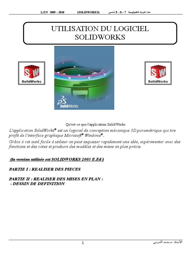 Initiation A La Modelisation Sur Solidworks Pdf Telechargement Gratuit