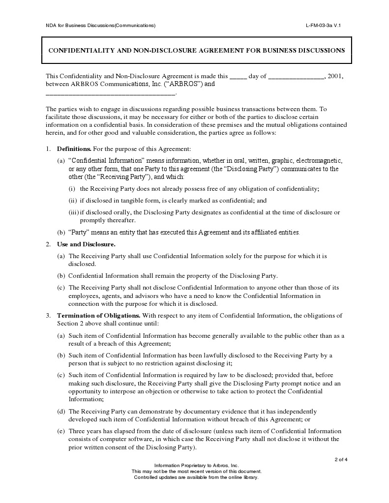 Nondisclosure Agreement Template Business Template