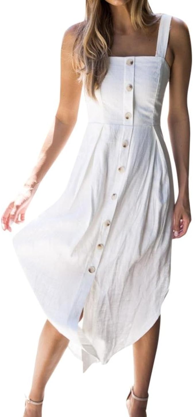Ansenesna Kleid Damen Sommer Kurz Elegant Ruckenfrei Vintage Sommerkleider Einfarbig Carmen Ausschnitt L Weiss Amazon De Bekleidung