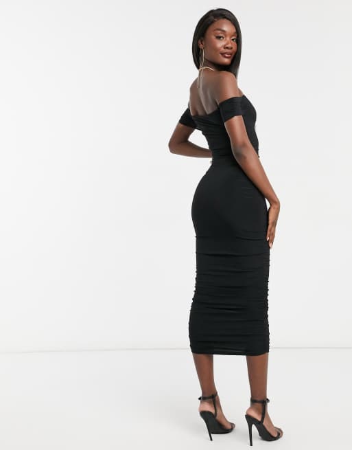 Club L Fliessendes Kleid Mit Carmen Ausschnitt In Schwarz Asos
