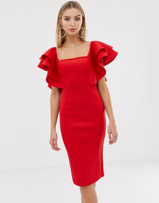 Lavish Alice Kleid Aus Neopren Mit Carmen Ausschnitt Und Doppelt Geruschten Armeln Asos