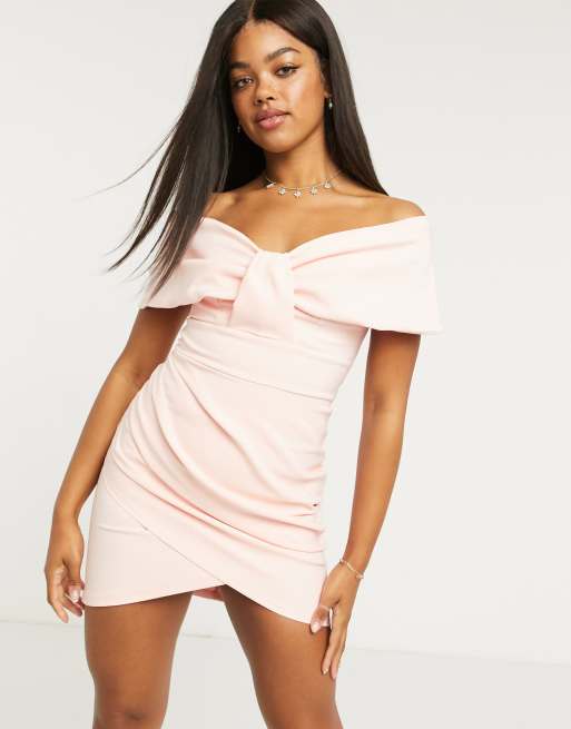 Lipsy Rosa Bleistiftkleid Mit Carmen Ausschnitt Und Schleifenverzierung Iebem Morelos