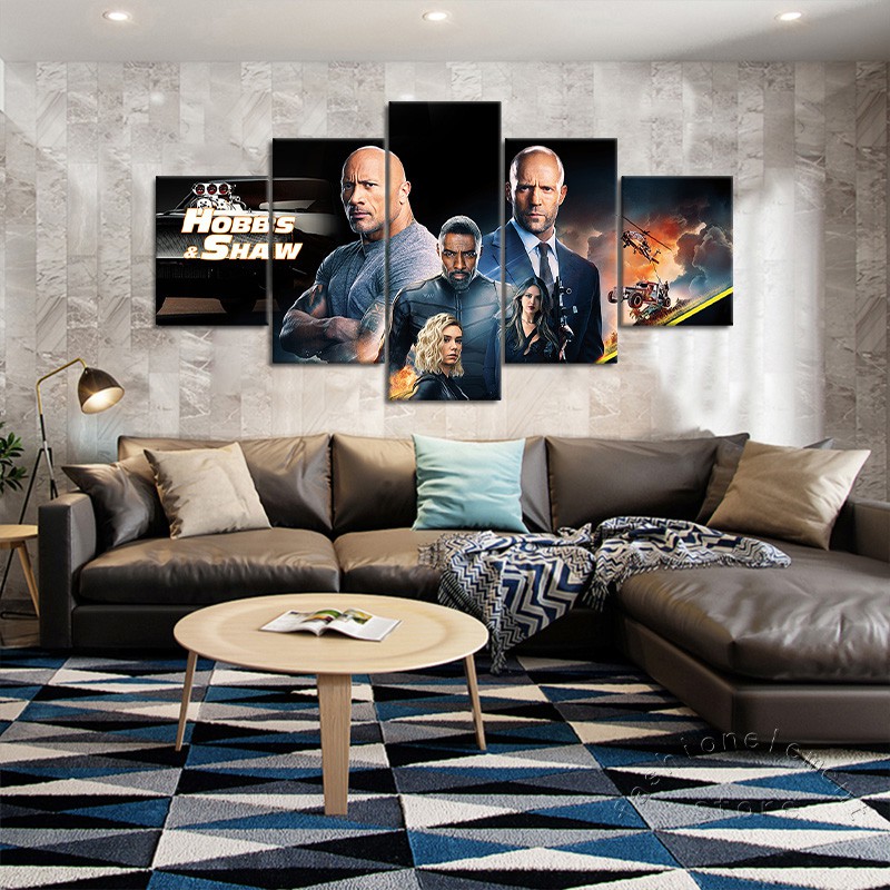 5 Panels Hobbs And Shaw Wall Art Canvas Painting Movie Poster Fast And Furious 9 Wall Sticker Framework Picture For Gift Shopee Malaysia