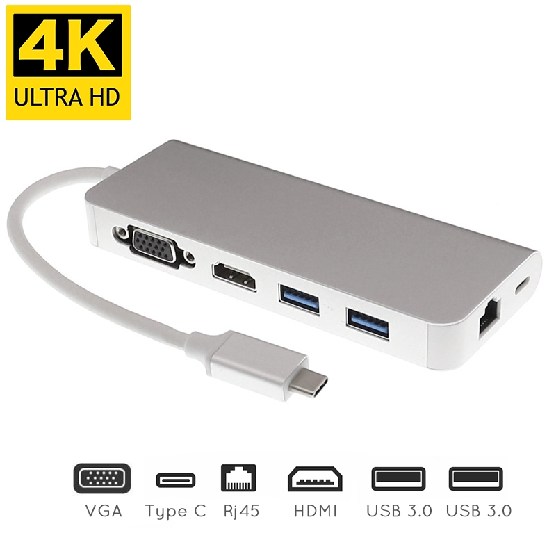 6 In 1 Usb Type C Extender Dock To Hdmi Vga Gigabit Ethernet Lan Rj45 Adapter For Macbook Air Pro Usbc Pd Charging Hub Shopee Philippines